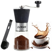 جديد مخصص محمول مطحنة قهوة يدوية زجاجية مطحنة لدغ مخروطية مع زجاجة حبوب قهوة زجاجية إضافية للإسبريسو