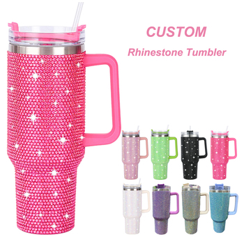 40oz Personalizado Artificial Diamante Vacuum Drinking Tumbler Dupla Parede Isolada Cerveja Caneca Garrafa De Água Com Alça De Palha